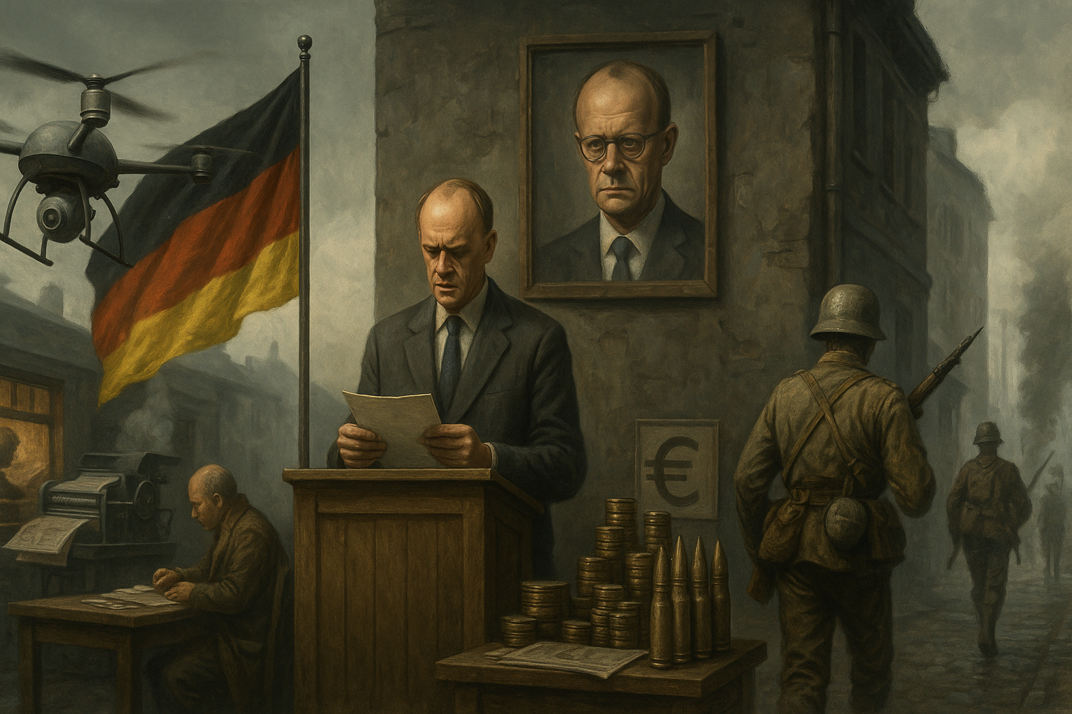 im Kanzleramt: Kriegstreiberminen.